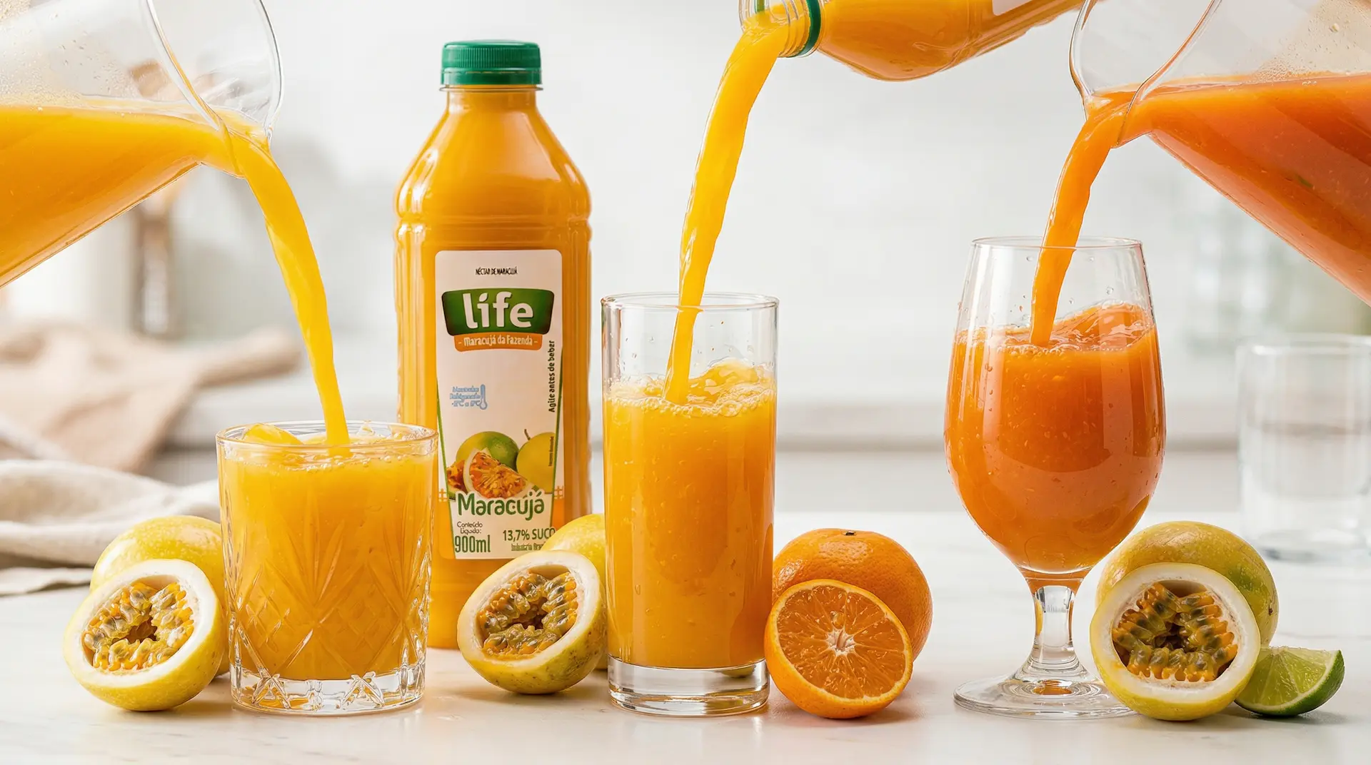 O suco integral, como o produzido pela Life Sucos, é feito apenas da fruta espremida, preservando sabor e composição nutricional. Os néctares, por sua vez, levam adição de água, açúcar e podem conter menor teor de fruta.
